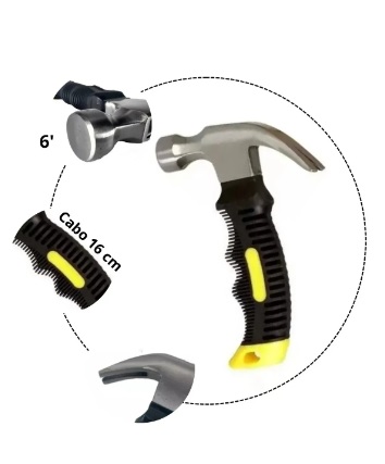 Mini Martillo de Mango Corto de Acero Engomado 16 Cm